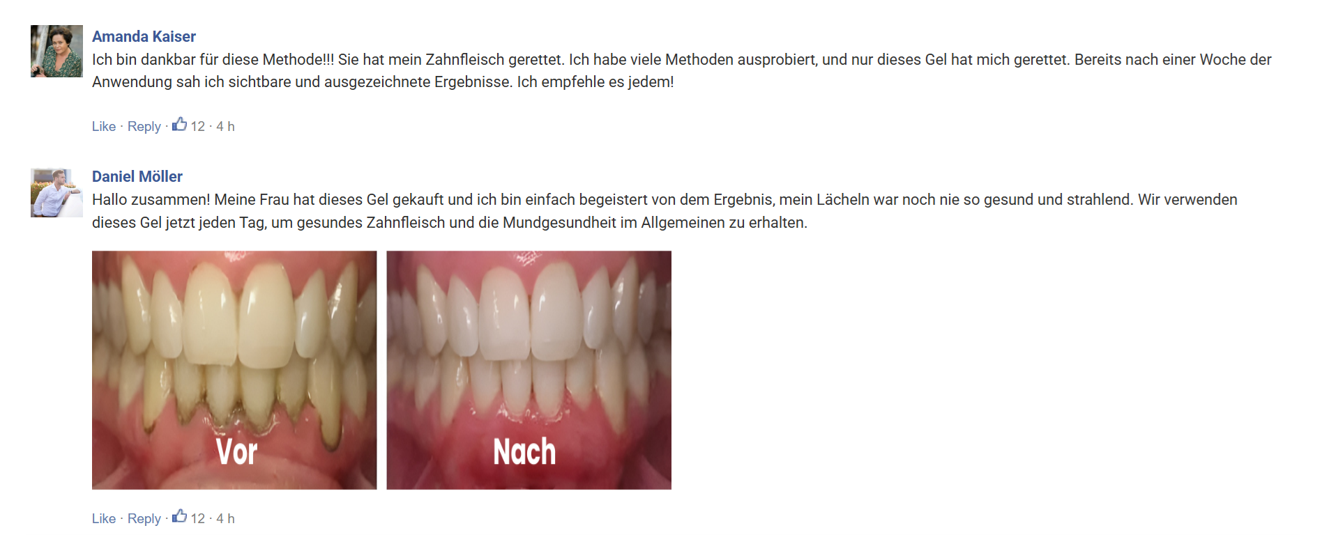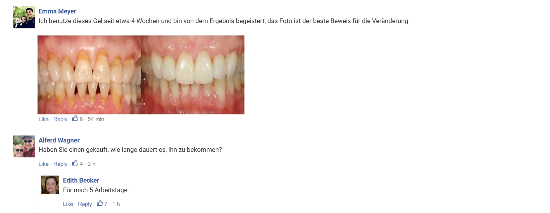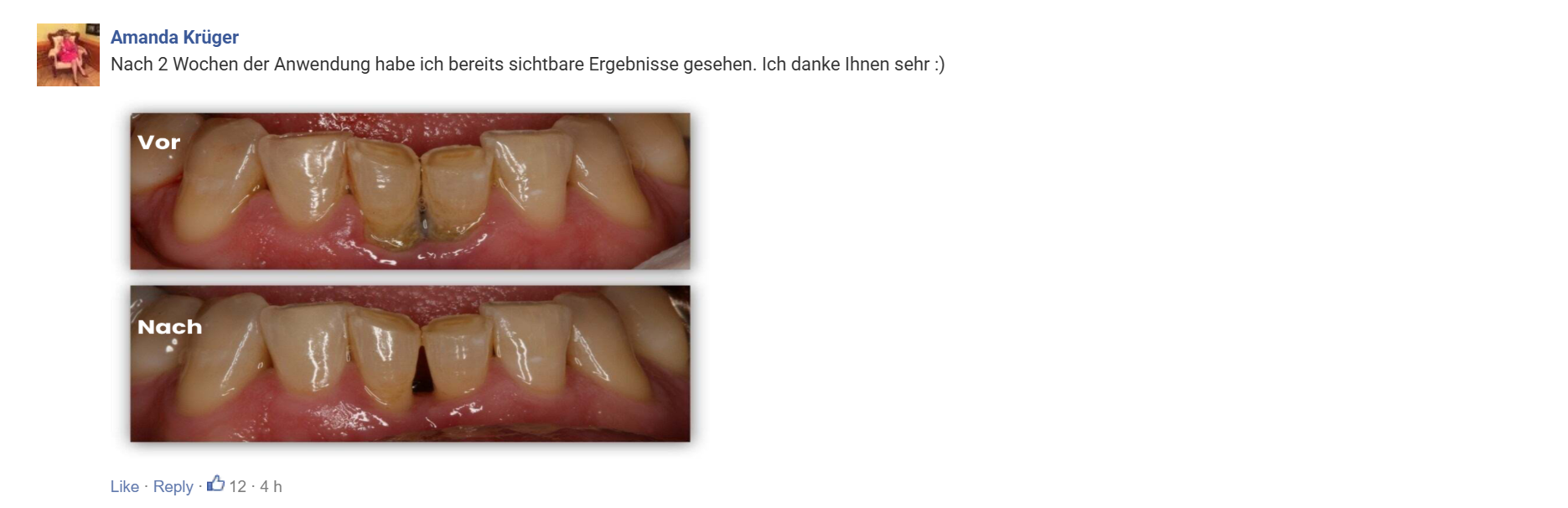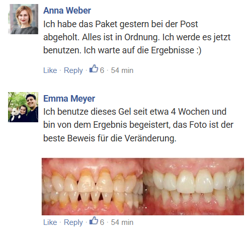 Nach der ersten Woche der Anwendung von Teeth Repair Gel werden Sie verstehen, warum unsere Kunden es als „lebensverändernd“ beschreiben.