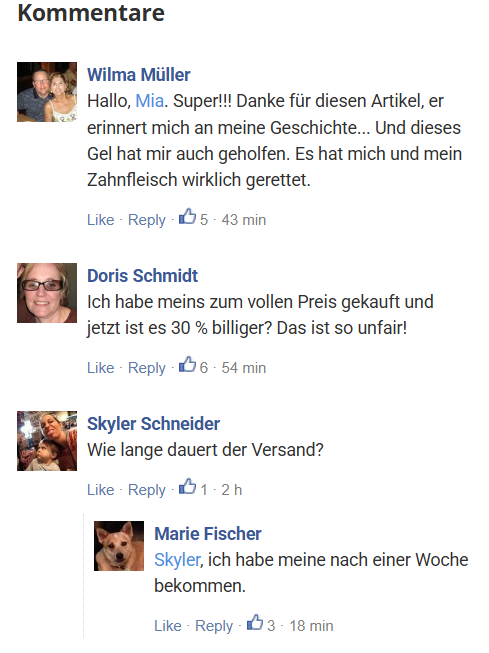 Im Gegensatz zu Medikamenten, von denen Ihr Körper abhängig werden kann, ist Teeth Repair Gel 100% natürlich und hilft Ihnen mit der Zeit, Ihr Zahnfleisch zu stärken, den Zahnschmelz wieder aufzubauen und ein gesundes, strahlendes Lächeln zu bekommen!